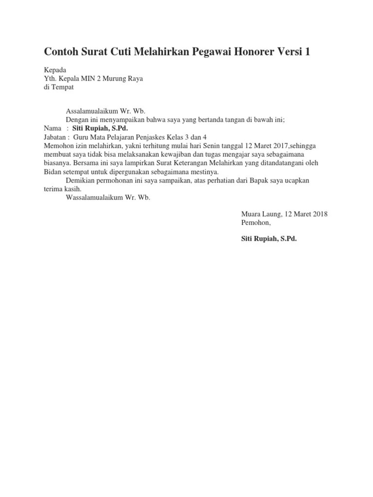 Bagi anda yang sudah pernah melahirkan dan pernah mengajukan surat izin cuti melahirkan, mungkin . Demi kesehatan ibu dan calon bayi, dokter pun juga akan menyarankan pengambilan cuti menjelang proses persalinan. Guru mata pelajaran pendidikan agama islam kelas 3 dan 4. Surat permohonan izin cuti bersalin bagi pegawai negeri sipil harus dibuat dengan mematuhi format yang ada.